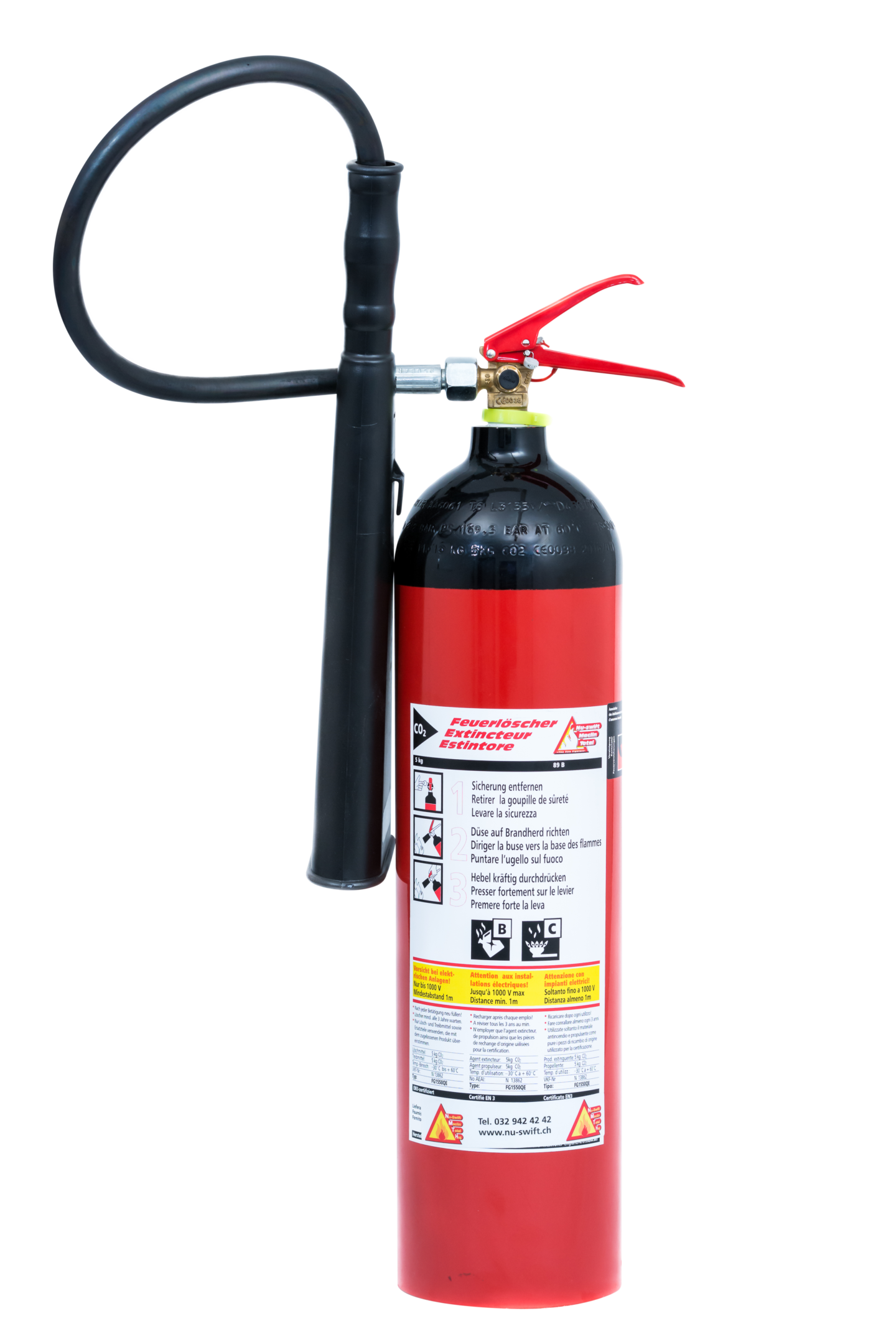 - Sehr gut geeigneter CO2-Löscher bei Bränden von flüssigen und schmelzenden Stoffen sowie von Gas, besonders geeignet bei elektrischen Bränden